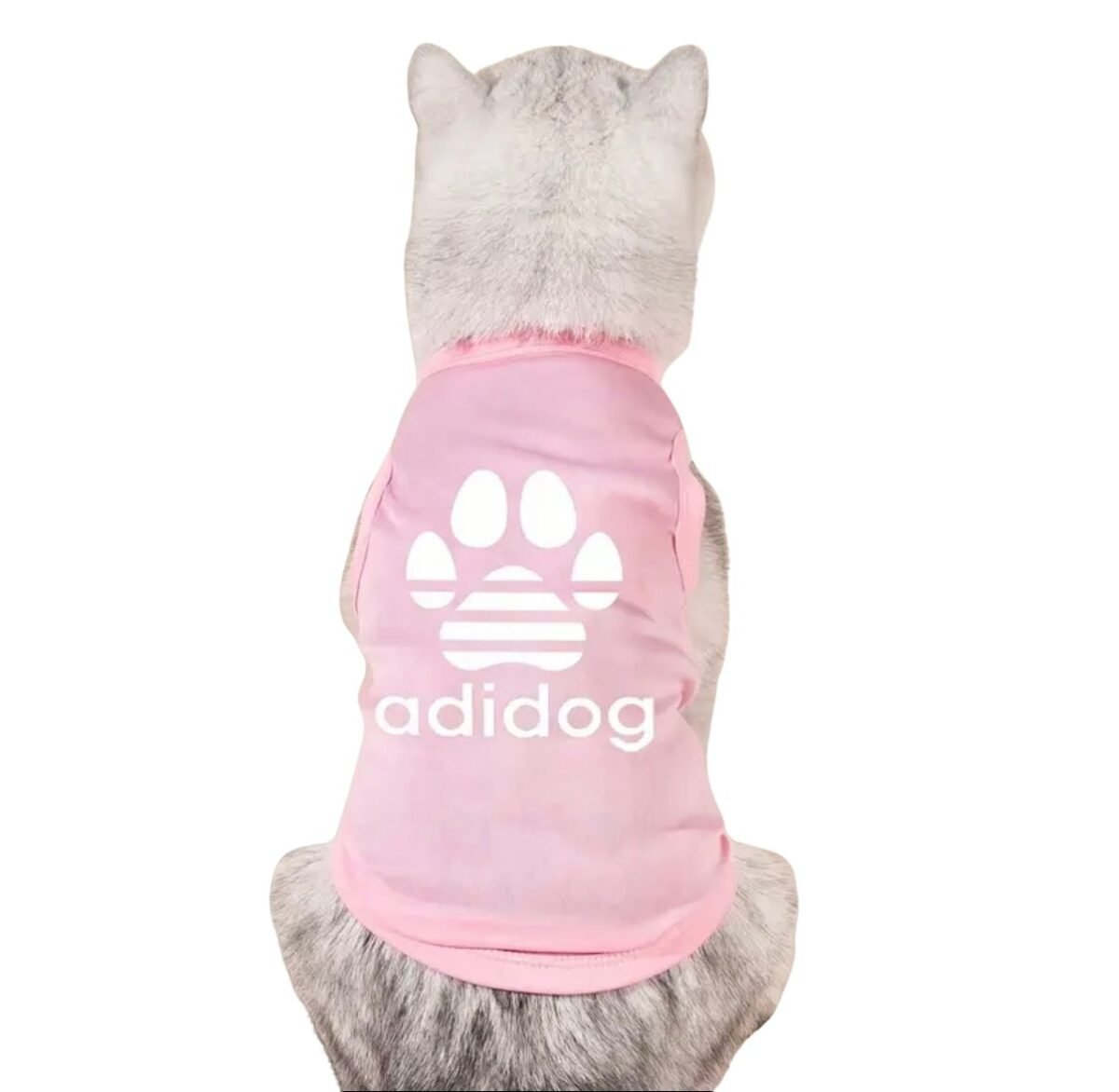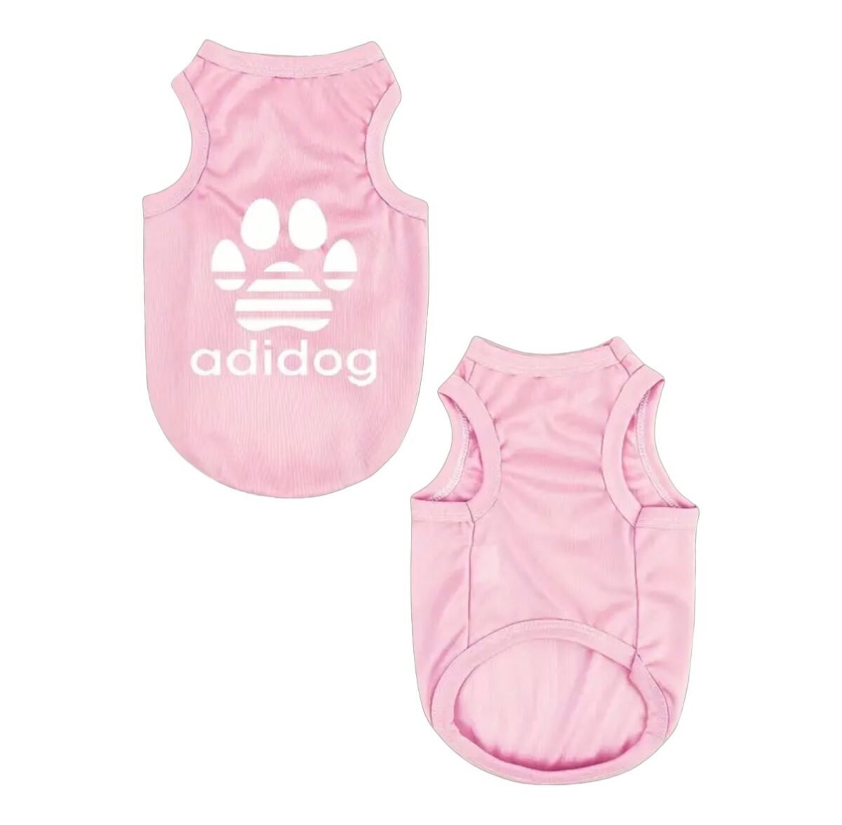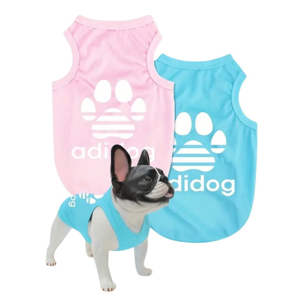 Estilo y Comodidad para tu Mascota. Dale a tu amigo de cuatro patas un toque de moda con esta camiseta “Adidog” sin mangas, ideal para perros y gatos.